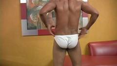 Esse cara musculoso se diverte esfregando seu pênis enquanto quer gozar e esvaziar suas bolas