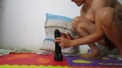 ![Close-up de um gay cavalgando com o vibrador para sair do caminho Close-up de um gay cavalgando com o vibrador para sair do caminho]()