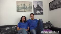 Pela primeira vez, esse casal vai participar de um casting pornô. A garota continua fazendo um boquete no cara e se prepara para transar.
