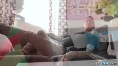 Essa mulher negra pega esse homem branco se masturbando e seu desejo sexual entra em ação, então ela vai comer esse pau de qualquer jeito!
