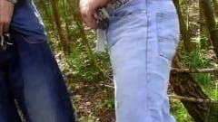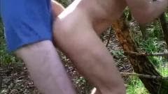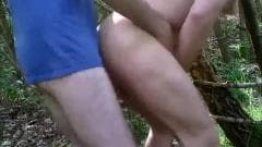 Longe de todos, esses dois caras estão dando um passeio pela floresta. Depois de fazer um boquete genail, o cara é fodido.