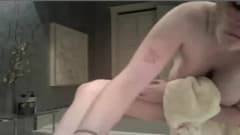 Ela se filma no chuveiro enquanto se acaricia e afeita seu bichano