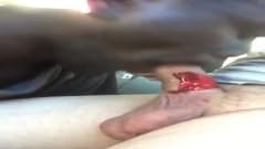 Esse negro chupa o pau desse branco, mas esse pau é muito fofo porque tem um pirulito preso nele que o deixa mais gostoso. Ávido!