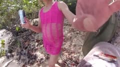 Um asiático homossexual vai à praia vestido de mulher para ver quem fode sua bunda. Não o perca