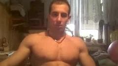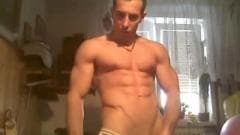 Esse cara super musculoso sabe muito bem o que tem que fazer para chegar ao clímax. É por isso que ele acaricia seu corpo e acaricia seu pau até gozar.