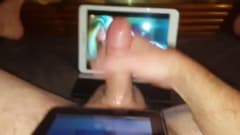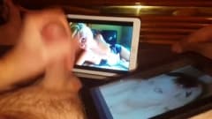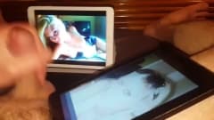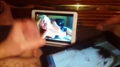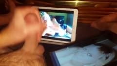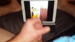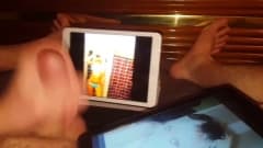 Esse cara gosta de tocar seu pau admirando as fotos de uma loira em seu tablet. Isso o excita o suficiente para ele se masturbar!