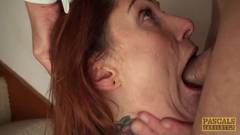 Uma grande cadela ruiva esmaga sua bunda na escada, é dominada e adora. Ele acaba engolindo toda a porcaria desse tio selvagem.