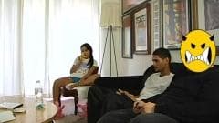 Esse cara está jogando videogame e sua namorada se despe e se masturba ao seu lado porque ele quer foder e é muito quente. O cara não tem escolha.