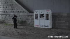 O cara escolhe entre três opções da máquina take away de garotas