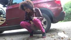 Depois de mijar na rua, ela se sentiu excitada e começou a pensar em ter algum prazer com o namorado e transar ao ar livre.