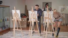 A nova pintora não resiste à beleza da loira Elizabeth Romanova e perde a concentração. Sela vai foder na frente dos outros alunos.