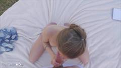 Essa linda princesa é Rebel Lynn, uma bela garota que terá um encontro sexual selvagem no parque com esse cara que goza em seu rosto.