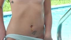 Anna Mae é uma pornstar que adora se masturbar com seu brinquedo favorito e hoje faz isso em uma piscina e de frente para a câmera para todos nós.
