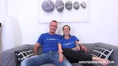 Uma marota de cabelos escuros faz filme de sexo com o marido