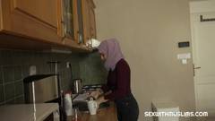 Aqui está uma esposa árabe gostosa que só quer ser fodida! Hoje, ela vai se fuder na cozinha deles!