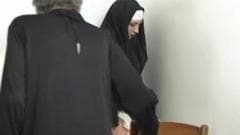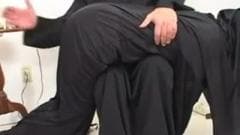 Esta freira é surpreendida pelo supremo sacerdote fumando um cigarro e receberá seu merecido castigo por ser uma pecadora. Vai bater nela na bunda