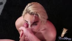Victoria Summers é uma estrela pornô loira e sexy que fica com o rosto cheio de esperma nessa cena, enquanto se masturba e se cobre