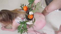 Um degenerado pervertido se aproveita de uma linda loira e bate em sua bela bunda enquanto a fode.