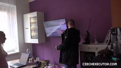 Este jovem visita a loira para fazê-la pagar suas dívidas. Ela sem dinheiro não tem opção, então oferece seu belo corpo para pagar em espécie.