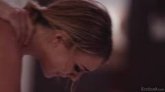 Uma loira peituda espetacular toma um banho relaxante com seu namorado na banheira e logo as coisas esquentam.