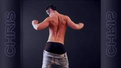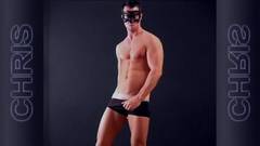 O astro pornô gay Chris está dançando. O cara se diverte muito fazendo isso e acaba se divertindo com seu pau grande na mão.