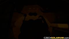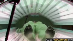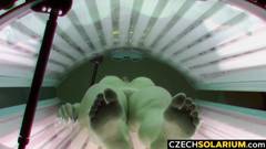 Veja esta loira nua se bronzeando em um centro de bronzeamento