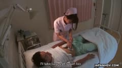 Essa asiática fofa é a enfermeira desse tipo que fica excitada quando faz a limpeza da noite. Você não pode evitar, você tem que aceitar.