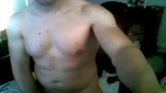 Um jovem musculoso se diverte se masturbando vigorosamente na frente da câmera. Olha como termina! voce Vai adorar