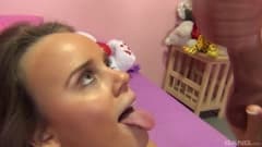 Essa jovem loira está brincando a roda do sexo e lhe calhou um boquete em primeiro lugar, depois uma foda missionária até terminar com gozada facial.