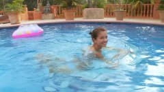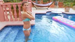 Esta morena com seus grandes mamilos vai se masturbar pra você na frente da câmera enquanto está desfrutando de um bom banho de sol na piscina.
