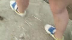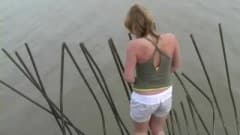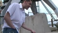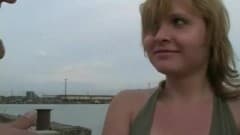 Esta loirinha não é nada tímida. Ao andar a pé ao ar livre conhece estes dois rapazes que lhe propõem para transar...e ela não disse não!