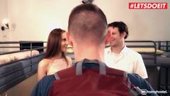 Corno safado queria ver sua esposa novinha sendo fodida por um desconhecido qualquer em sua frante para se masturbar, então foi até um motel para escolher