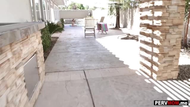 Surpreenda a madrasta tomando sol na piscina e pedindo para ela tirar o maiô, esse Milf faz pra mostrar os peitos