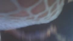 Um homossexual vestido de empregada fica de quatro para foder a bunda dela com um vibrador que ele prendeu em um canto da cama.