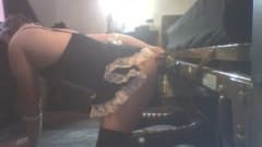 Gay vestido de empregada doméstica fodendo seu cuzinho com um vibrador
