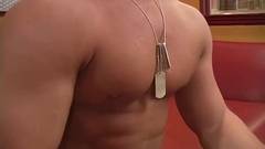 Esse policial não quer ser reconhecido, então ele coloca uma máscara para essa cena pornô. Ele tira a roupa e mostra seus músculos antes de se masturbar.