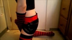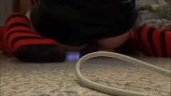Vestida como uma joaninha, esta jovem trans se diverte colocando o vibrador na bunda e masturbando o seu pau. Ela se masturba até gozar!