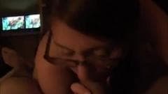O galo desse homem fica duro quando essa morena de óculos se põe em ação. Seus peitos deixam qualquer um realmente excitado só de olhar.
