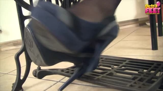 A morena está trabalhando com seus pézinhos sensuais, em meias pretas transparentes, em uma velha máquina de costura. Se você tem fetiche por pés vai amar!