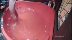 Uma garota bonita convida dois amigos para o seu jacuzzi e os dois se masturbam e brincam com seus galos debaixo de água quente.