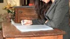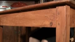 A morena usa meias pretas finas e sapatos de salto. Ela tira os sapatos, começa a mexer os dedinhos, e põe os pés sobre a mesa. Que delícia de fetiche!