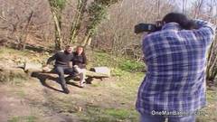 Uma sessão de fotos ao ar livre termina com três caras transando ela