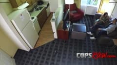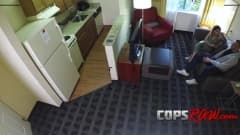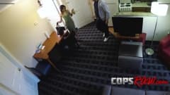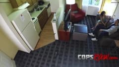 O policial tem seu pênis gordo chupado e é engolido por uma garota morena, com peitos pequenos, e ele dedilha sua buceta molhada, até que ela aprenda!