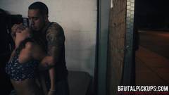 A morena magra é seqüestrada à noite na rua, é fodida com força. Ela está assustada, mas de alguma forma ela gosta e está muito excitada.