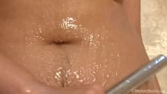 Como é lindo o corpo de Jasmine quando ela o tem molhado e cheio de espuma. Ela é uma daquelas mulheres que deixam nosso pau duro quando a vemos nua.