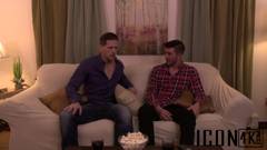 Dois homens jovens muito atraentes começam a se beijar e acariciar um ao outro até acabar apaixonadamente