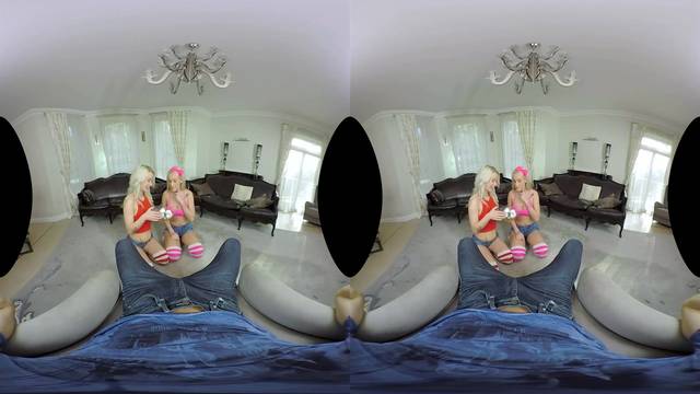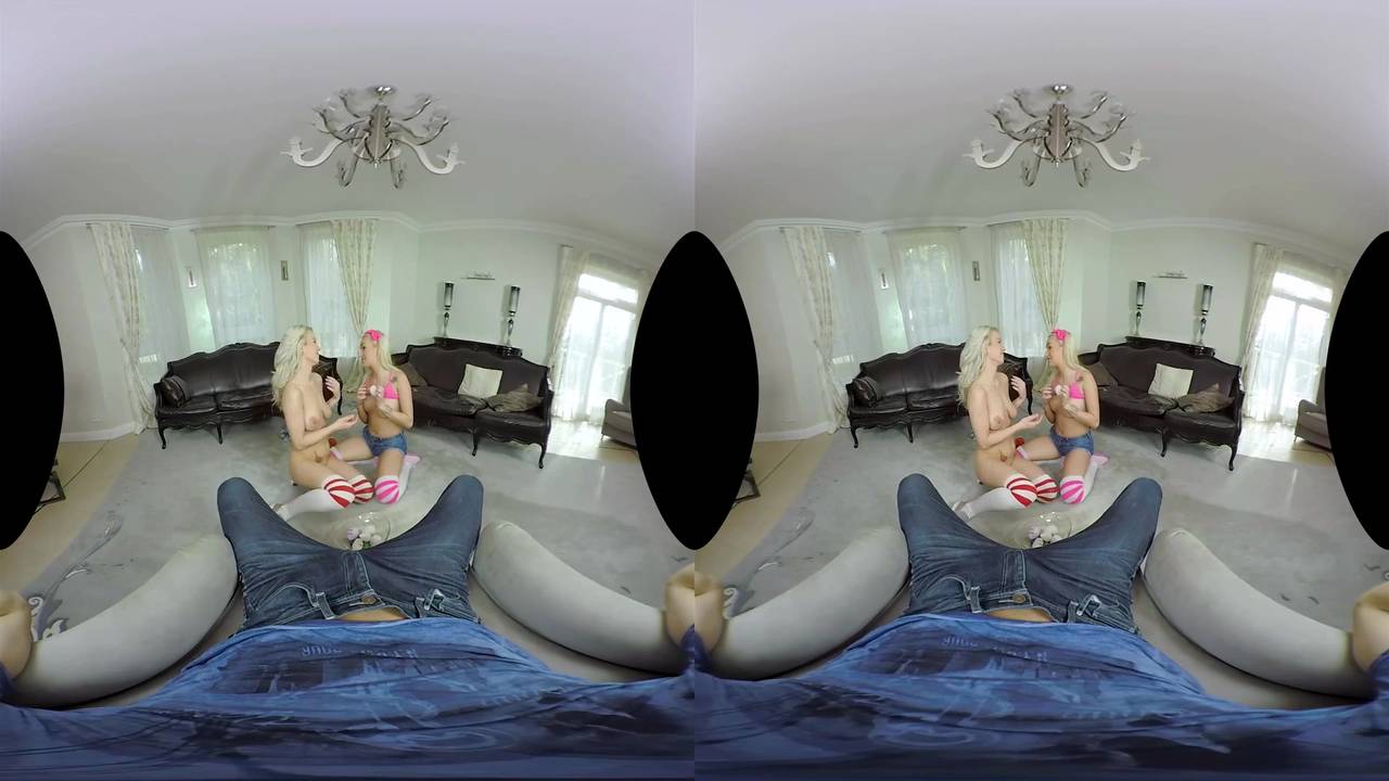 As duas belas jovenzinhas se beijam na frente do cara, que já a tem dura. Elas se aproximam dele e chupam ela.