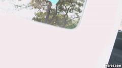 Na parte de trás da van, as duas estrelas pornô Quinn Wilde e Sophia Leone exibem seus seios. Elas se divertem e até tiram a calcinha.
