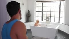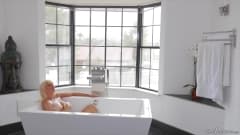 A madura Marie McCray nos mostra suas curvas na banheira e depois chupa um pau com paixão!