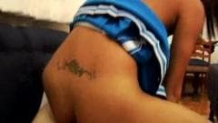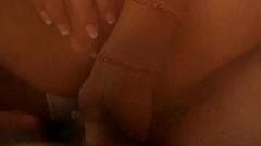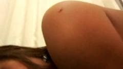 A novinha asiática sobe e desce no pau do cara. Eles mudam de posição várias vezes, e ela ajeita o pau dele entrando no seu cuzinho, e ele goze nas nádegas